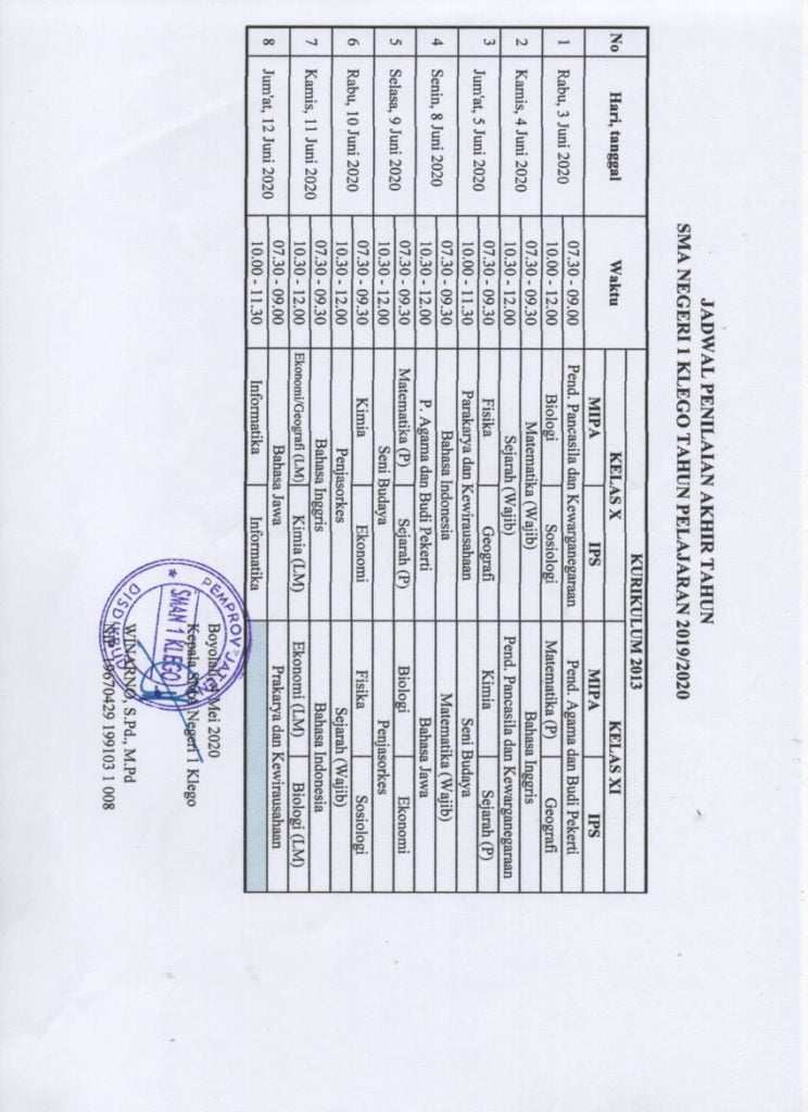 Pengumuman Hasil Kelulusan SMAN 1 Klego Tahun Pelajaran 2019/2020