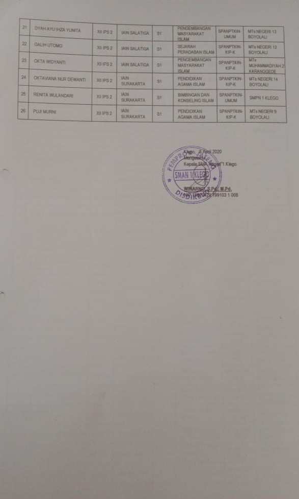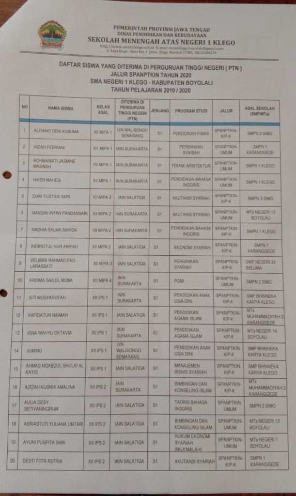 Daftar Siswa yang Diterima SPANPTKIN Tahun Pelajaran 2019/2020