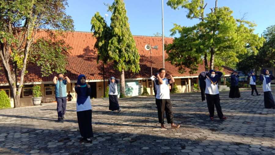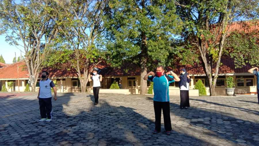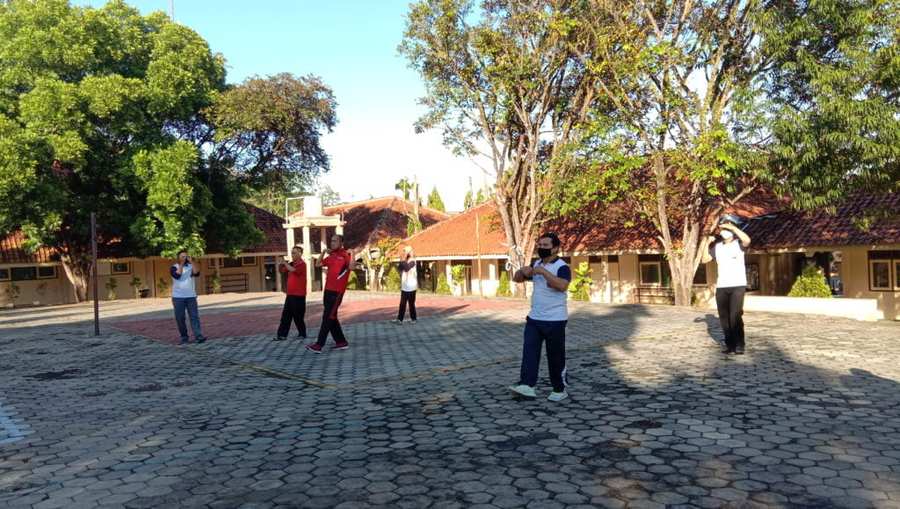 SMA N 1 Klego setiap hari jumat mengadakan kegiatan senam bersama Bapak Ibu Guru Karyawan sebelum melakukan KBM Daring dan aktivitas yang lain.