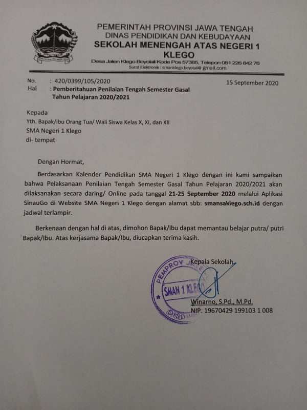 Pemberitahuan Penilaian Tengah Semester Gasal Tahun Pelajaran 2020/2021