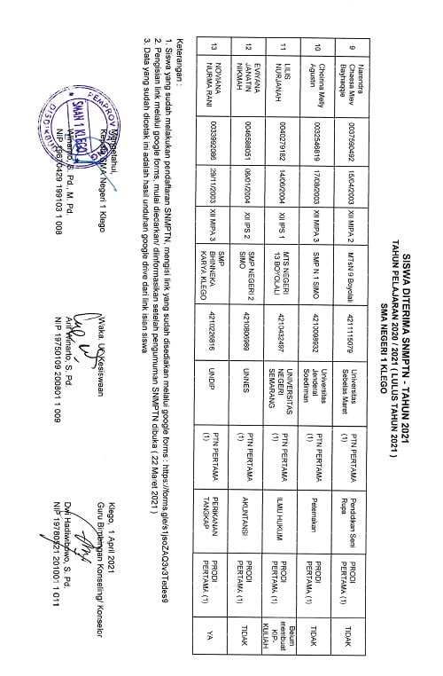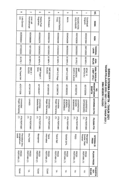 Data Siswa Diterima Jalur SNMPN Tahun 2021