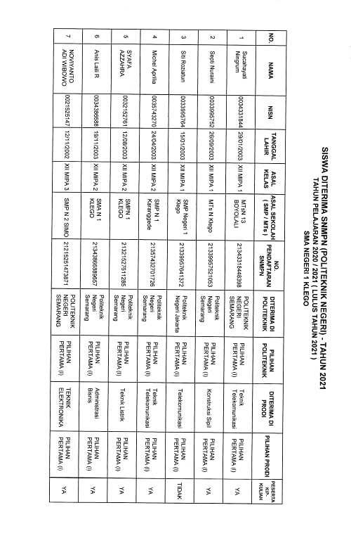 Data Siswa Diterima Jalur SNMPN Tahun 2021