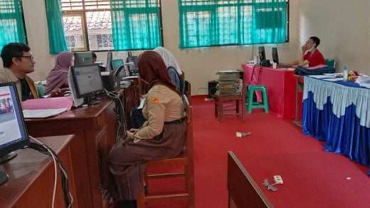 Verifikasi Data siswa baru untuk pembuatan Akun Verifikasi data anak dalam pembuatan Akun PPDB Tahun 2023 Pendaftran Akun PPDB Tahun 2023 Diruang Lab. TIK 1 Pelaksanaan PPDB Tahun 2023